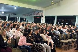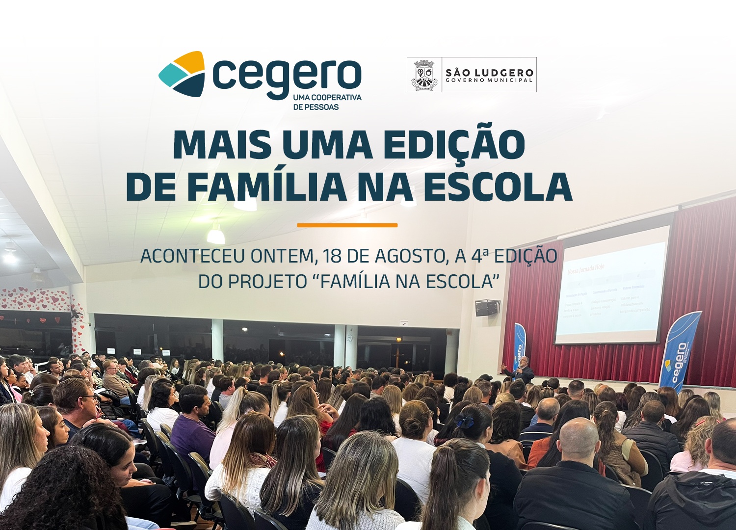Com o Centro Cultural Multiuso Dimas Schlickmann recebendo mais de 550 pais ou responsáveis e educadores das redes municipal e estadual de ensino de São Ludgero, a 4ª edição do evento “Família na Escola” realizado no dia 18 de agosto, a partir das 19h30min, atingiu mais uma vez com êxito seu objetivo. O evento é resultado de uma saudável parceria entre a Cooperativa de Eletricidade de São Ludgero (Cegero) e a Prefeitura.