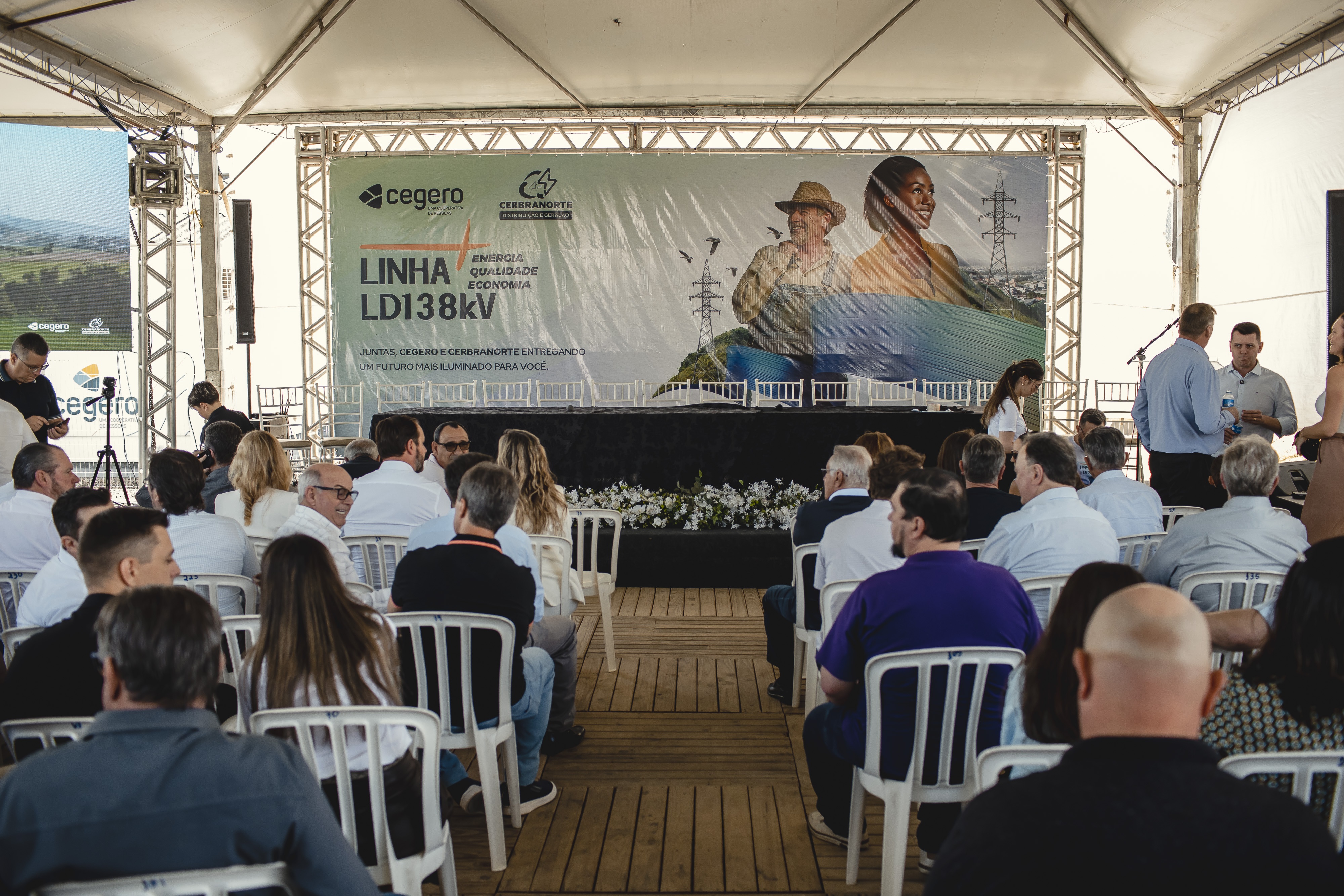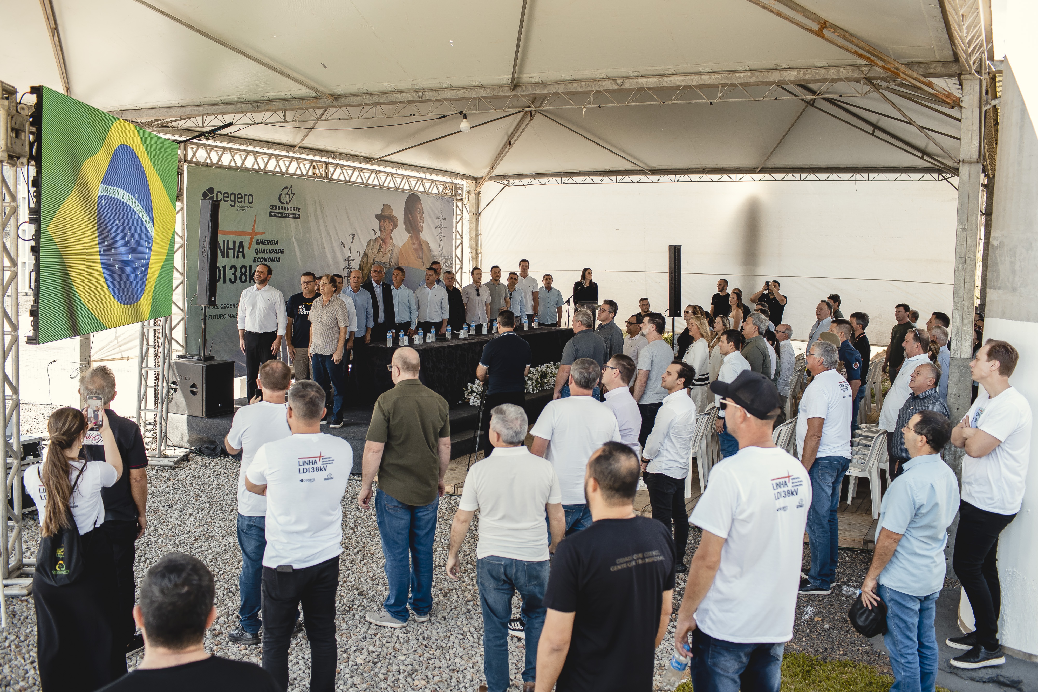 Em um ambiente de muita alegria, energia positiva e com um grande número de representantes cooperativistas, autoridades públicas, entidades, colaboradores, membros de conselhos e sócios marcando presença, a Cooperativa de Eletricidade de São Ludgero (Cegero) e a Cooperativa de Eletrificação de Braço do Norte (Cerbranorte) inauguraram a nova Linha de Distribuição/Transmissão de 138 kV (LD138kV), já conectada ao Sistema Interligado Nacional (SIN), no sábado, 11 de outubro, às 10 horas, em frente às subestações de ambas as cooperativas, localizadas na rua João Bianchini, bairro Bela Vista, em Braço do Norte.