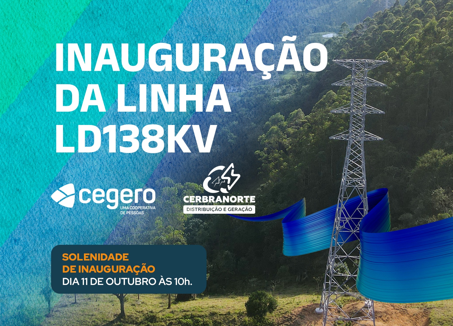 No dia 11 de outubro, às 10 horas, a Cooperativa de Eletricidade de São Ludgero (Cegero) e a Cooperativa de Eletrificação de Braço do Norte (Cerbranorte) inauguram a nova Linha de Distribuição/Transmissão de 138 kV (LD138kV), após investimento total de R$ 62 milhões, já conectada ao Sistema Interligado Nacional (SIN) no dia 20 de julho. A solenidade histórica acontecerá em frente as Subestações da Cegero e Cerbranorte, localizadas à rua João Bianchini, bairro Bela Vista, em Braço do Norte.